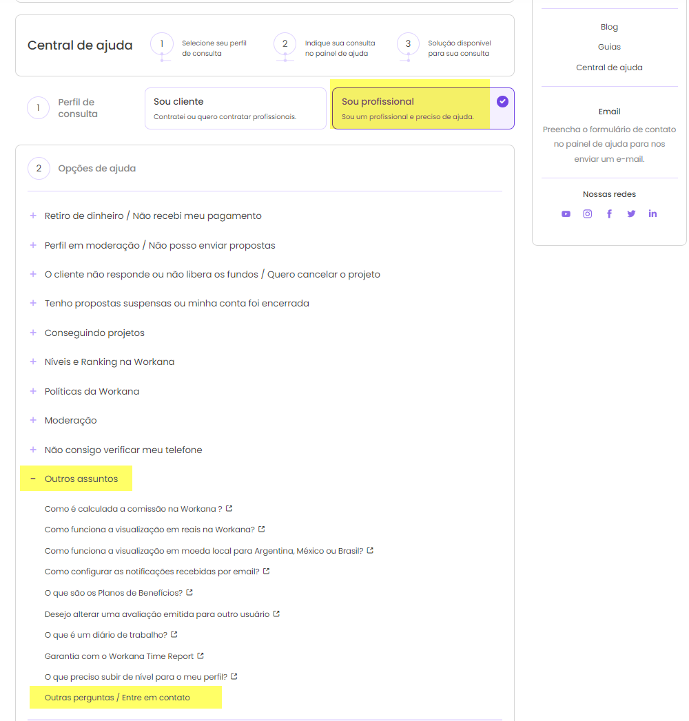 - Se você possui duas contas na Workana, deverá fechar uma delas, pois não é permitido que um mesmo usuário possua duas contas ativas.